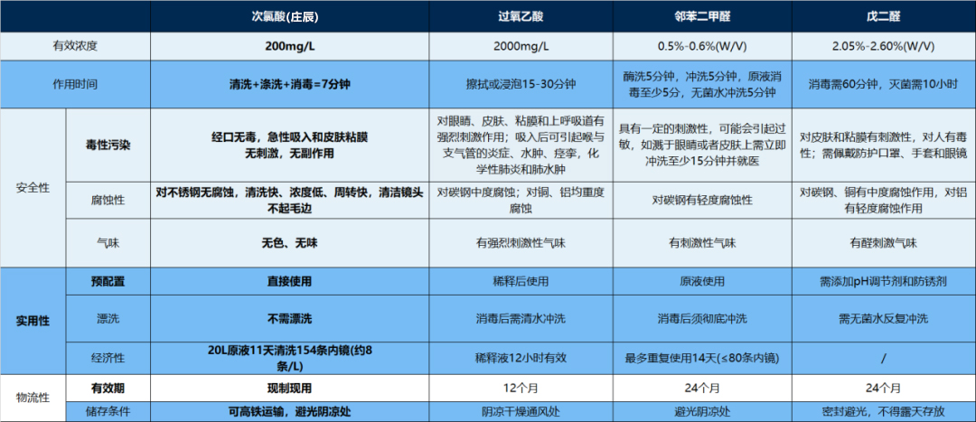 大量实验数据支撑了次氯酸的临床应用。内镜消毒经济性分析表明,20L 次氯酸消毒液可循环处理191根胃镜或237根肠镜,消毒仅需3分钟,显著提高内镜周转效率,成本效益显著。腐蚀性测试中,200ppm 次氯酸浸泡100次对内镜外表无腐蚀、无变色,患者使用后无灰染或刺激反应。